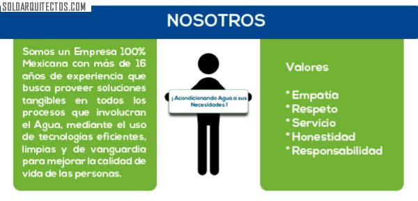 Somos un Empresa 100% mexicana con más de 16 años de experiencia que busca proveer soluciones tangibles en todos los procesos que involucran el Agua, mediante el uso de tecnologías eficientes, limpias y de vanguardia para mejorar la calidad de vida de las personas