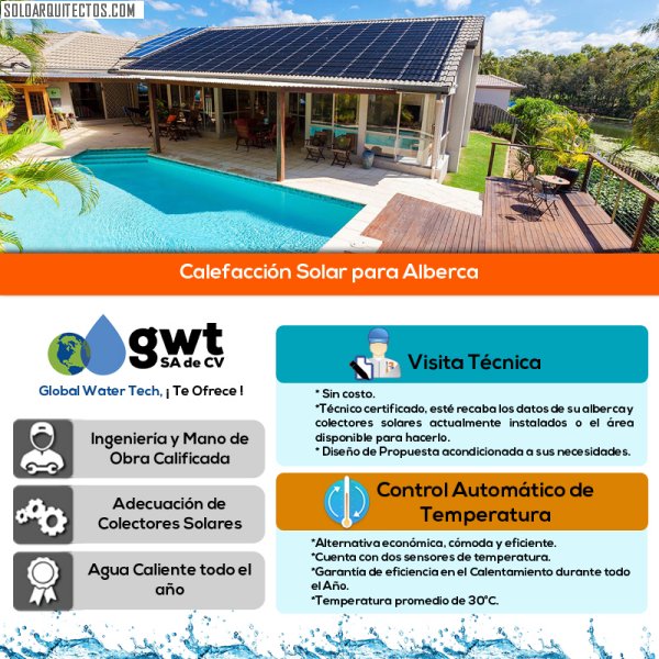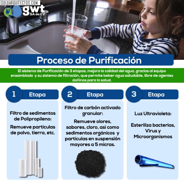 Fundada en 2002, Global Water Tech es una Empresa Especializada en Sistemas de Tratamiento, Potabilización y Purificación de Agua, así como Energías Renovables; en las áreas: Residencial, Comercial, Industrial, Agrícola y Municipal Con capacidad Técnica Calificada para garantizar el buen término de cualquier Proyecto que se nos requiera. Así como el manejo de todo el Equipamiento Electromecánico de los sistemas de Agua; que incluye: